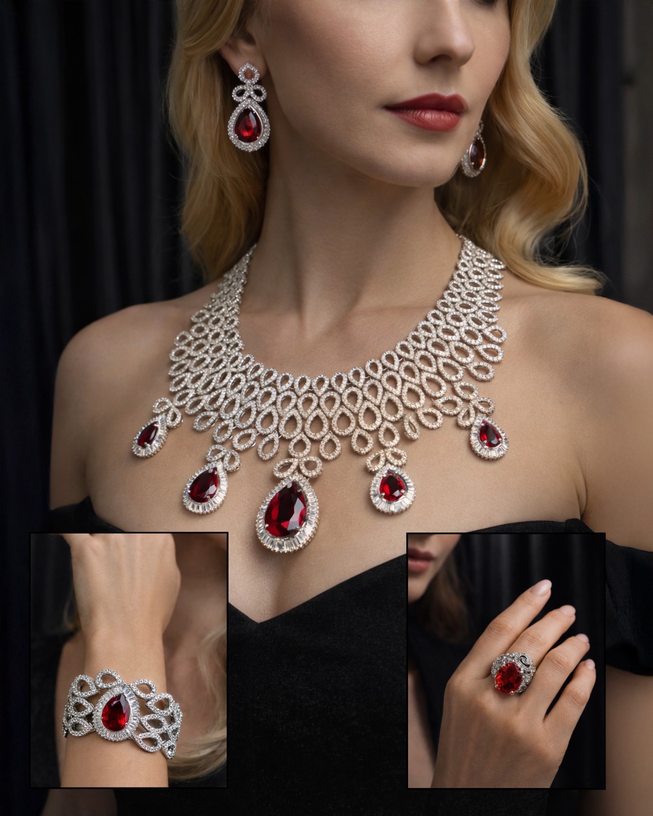 طقم فضة مرصع با...