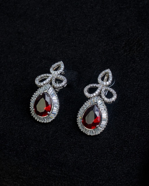 طقم فضة مرصع بالأحجار باللون الاحمر