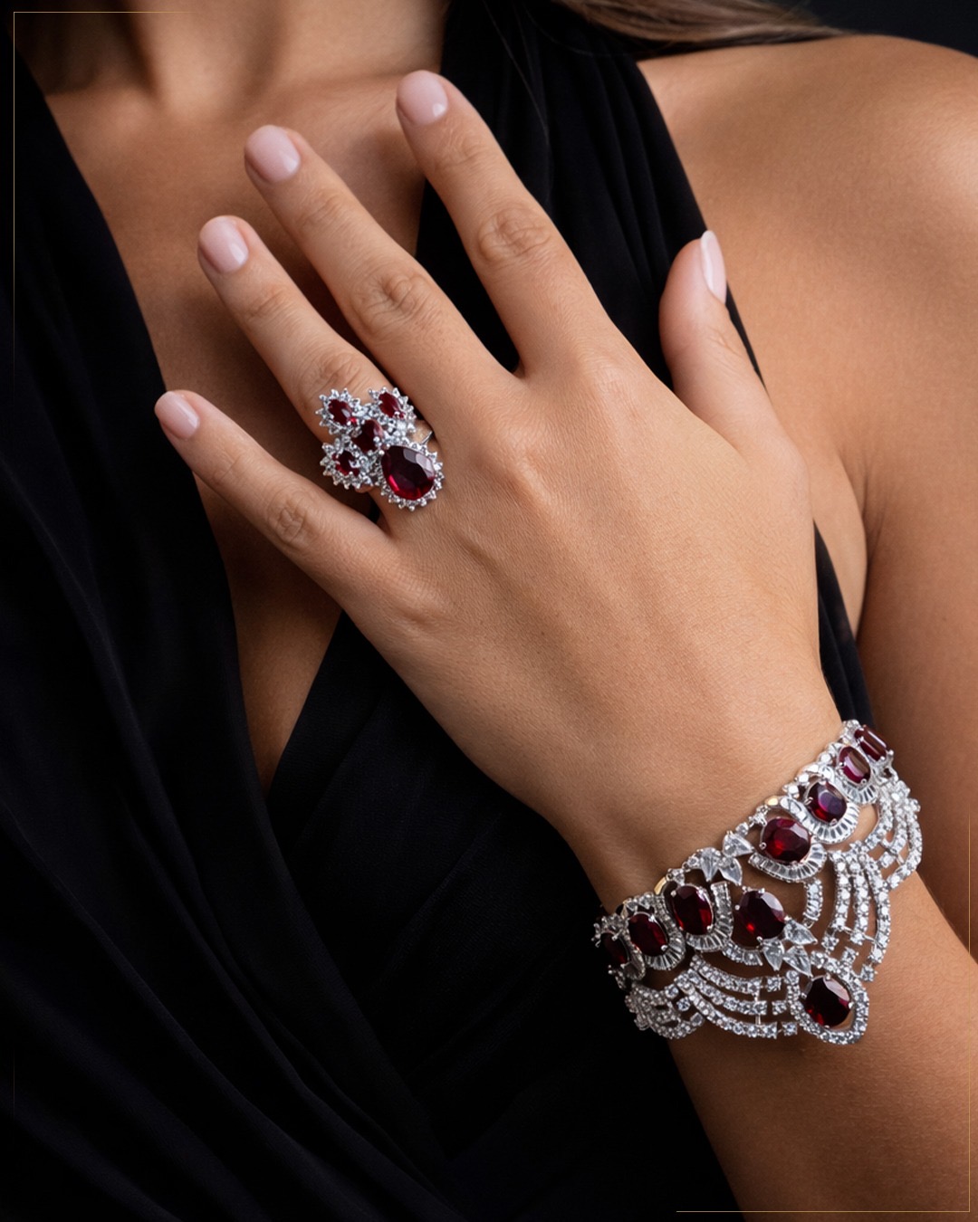 طقم فضة مرصع بالأحجار الحمراء المميزة تليق لملكات هذا العصر.